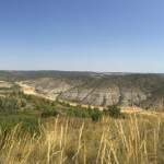 Un pequeño repecho y estamos en el Pinarejo a 868 metros de altura. Las vistas son espectaculares. Vemos todo el valle del Tajo, la Sierra de Altomira al fondo, Albalate de Zorita, Almonacid de Zorita, Zorita de los Canes; más a la derecha están los pueblos de Almoguera, Yebra, Albares y un largo etc, la vista es espectacular; y a la izquierda la Microrreserva de los Cerros Margosos de Pastrana y Yebra.
