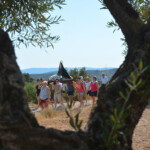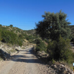 El camino empieza a ascender poco a poco y ya se ven los primeros olivos. Caminamos por un buen carril con algunas sombras de carrasca mientras vamos ganando altura para llegar a un collado a los 4 kilómetros de la salida; estamos en el paraje de Monte Viejo. Justo en este punto hacemos un giro brusco a la derecha, para, en trescientos metros, llegar al monte del Telégrafo a 928 metros de altura, en el paraje de las Noguerillas.