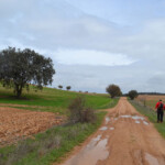 La pista estaba bastante embarrada y encharcada en algunos puntos. A ambos lados extensos campos de cereal con un tapiz verde porque la simiente empezaba a brotar. Un cruce y un giro a la derecha para llegar a la ermita de Valdelagua.