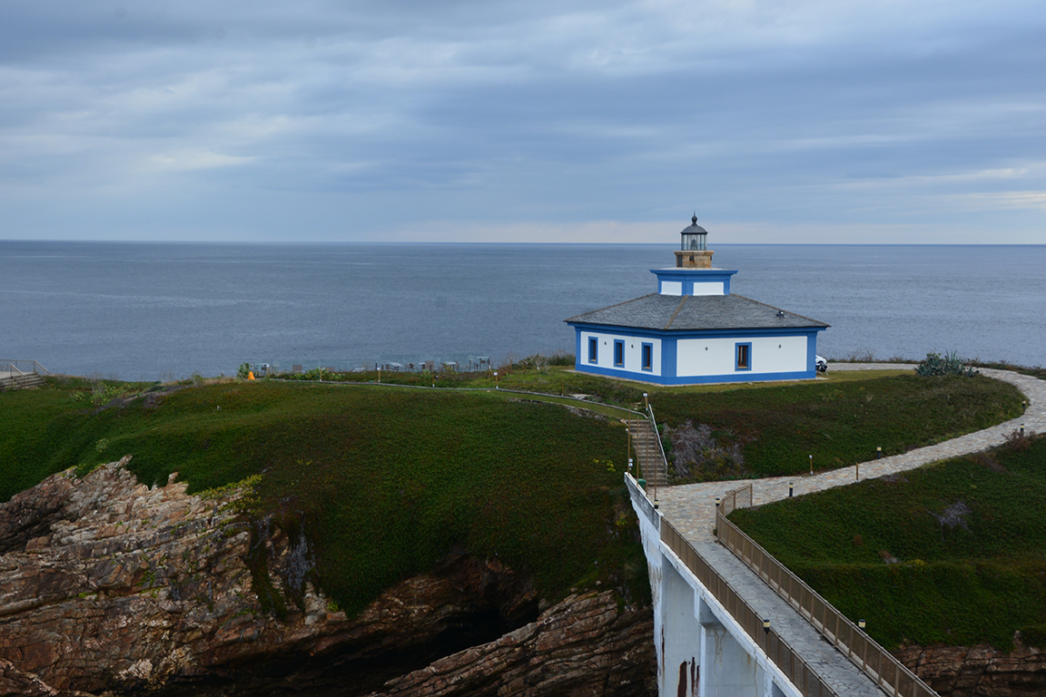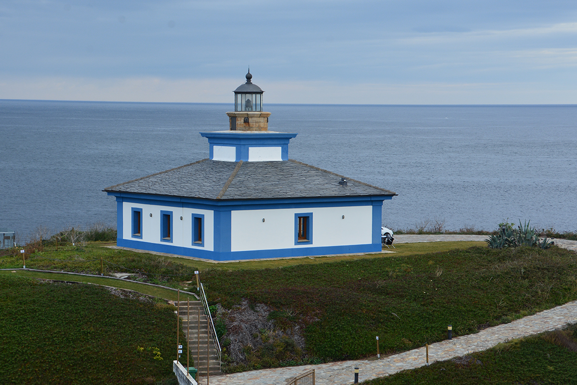 Descripción: Fue el faro original con el que se cubría toda la costa occidental de Ortegal, anterior al faro situado en el cabo de este nombre. La sinuosa carretera de acceso nos da una idea de lo hermoso del paisaje de la Costa Ártabra.