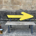 La ruta la iniciamos en las proximidades de la Plaza de España, dejando a un lado la iglesia de Santa María del Campo, para continuar por la calle San Francisco y seguir ya la señalización oficial de la concha y la flecha amarilla sobre fondo azul que nos vamos a encontrar, junto a los mojones kilométricos, durante todo el recorrido.