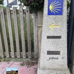 Callejeando pasamos junto a la pequeña capela de San Lázaro. Poco a poco dejamos atrás la Galicia marinera para internarnos en la Galicia rural. Los primeros kilómetros de esta etapa la hacemos por carreteras de poco tránsito y algunas correodoiras entre bosques de eucalipto.