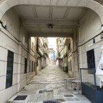 El camino callejea por la ciudad ferrolana, pasando por el Parador de Turismo, la plaza de Amboage, la plaza del Ayuntamiento y nos desviamos hasta el Cantón de Molins y rodeando el astillero ferrolano y las instalaciones de Navantia llegamos al borde de la ría que la vamos a seguir todo el camino.