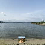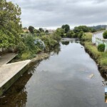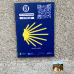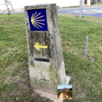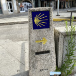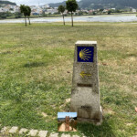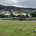 Seguimos al borde la ría y pasamos junto al hito del km 100 hasta Santiago y ya divisamos una pasarela peatonal que nos permite cruzar la ría para llegar al albergue de peregrinos.