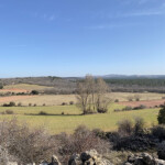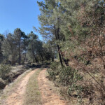Caminamos por la pista por la que hemos ido, en dirección al pinar. Poco después de pasar bajo de una línea de alta tensión, dejamos a la izquierda un carril y seguimos por el de la derecha, es el más marcado.