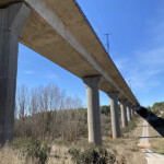 Dejamos a la izquierda el arroyo; la senda está definida y bien señalizada. Subimos entre piedras y cruzamos por la parte de arriba el arroyo. Poco después la senda de convierte en carril, hace un giro a la izquierda y termina en el camino de servicio de la línea del AVE.