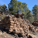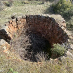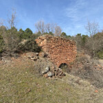 Aproximadamente a los 600 metros llegamos a un claro del monte donde hay unas edificaciones; una de ellas, aún bien visible, es un antiguo tejar. Podemos ver su forma interior circular e incluso la bocana por la que se introducía la leña para la cocción de la cerámica.