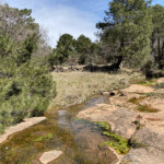 A los doscientos metros, otra flecha en un cruce, nos indica que debemos de ir por la derecha. El camino está menos marcado que el anterior y en nada cruzamos el arroyo de la Cañada por un vado. (A este cruce volveremos en el regreso para ir a la fuente de La Cobertelada).