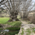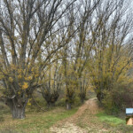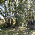 Desde aquí y siendo las indicaciones, descenderemos por una bonita senda. Una vez abajo frente a nosotros vemos magníficos ejemplares de grandes y centenarios chopos cruzando poco después el río, donde encontraremos un atril informativo.