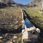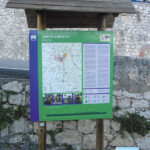 Aquí vemos ya un panel de la ruta senderista con toda la explicación de la ruta. Avanzamos en descenso unos 150 hasta un cruce, donde giraremos a la derecha y nos encontramos con una mesa de interpretación que nos pone en antecedentes de la ruta. En este punto nos metemos por intrincadas sendas y caminos que recorren las huertas horchanas y sirven a sus vecinos de caminos para llegar a ellas. En algunos puntos el agua corre a nuestros pies por intrincados canales que llevan el líquido elementos a las sedientas huertas.