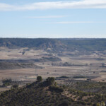 Continuamos nuestro cómodo paseo, admirando y deleitándonos con las vistas y el paisaje hasta que a los 700 metros llegamos al Paraje de las Fuentes, en una doble curva a izquierda y derecha. Aquí una bonita fuente con doble caño, pilón y abrevadero escalonado nos permitirá desfrutar de nuestra jornada de senderismo. El lugar está acondicionado con bancos. Continúa el carril en suave ascenso hasta que se junta con un buen camino ancho que en sí es una cañada pecuaria, la cañada Lorenzo, en el alto de la meseta alcarreña, giramos a la derecha y ya el paisaje cambia por completo, con amplios paisajes cerealistas de secano e incluso a lo lejos, en días claros se ve la sierra de Guadarrama.