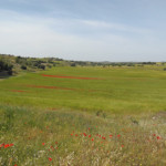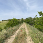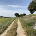 Para continuar nuestro camino ya de regreso a Yebra, rodearemos la iglesia dejándola a nuestra izquierda y un carril en descenso nos lleva a otro que nos viene por la izquierda, seguiremos por la derecha hasta un primer cruce donde giraremos a la izquierda y unos metros más allá cogemos el que nos sale a la derecha y continuaremos por él, es el viejo camino de e Yebra a Pozo de Almoguera.