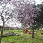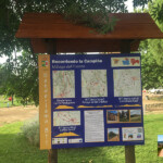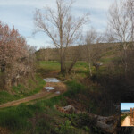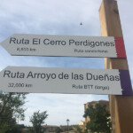 Iniciamos la ruta de senderismo, al igual que las tres de BTT, en el panel situado junto al Parque de las Dueñas. Nuestra ruta comienza en la dirección que indica la flecha direccional que encontraremos junto a este panel informativo, tomando dirección noreste. A poco de salir atravesamos el arroyo de las Dueñas por un puente peatonal.
