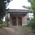 Dejamos a la izquierda el lavadero recién reconstruido y a su lado una columna con cruz que representa un calvario. Poco después y junto a una casa hay una fuente con agua fresca, un lugar ideal para aprovisionarnos del líquido elemento, ya que no tendremos posibilidad de encontrar agua en todo el recorrido. Y a los doscientos cincuenta metros desde la salida llegamos a la ermita que está situada sobre un altozano, podemos visitarla un momento, pues la reja de acceso suele estar abierta.