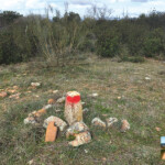 Pasada la ermita, y su trasera, nos sale un carril a la izquierda que es el que deberemos de tomar, y que coge dirección norte. Es un camino muy utilizado por los agricultores para llegar a sus campos de olivos, por lo que siempre nos salen caminos a derecha e izquierda. Poco después de la finca ganadera llegamos a un cruce y cogeremos el carril de la izquierda. Siempre seguiremos por el más marcado y en algo más de 100 metros llegamos a un carril principal que es el que viene del pueblo, seguiremos por este a la derecha