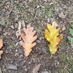 En otoño el roble presenta un color marrón claro y el haya toma un color más rojizo (los visitantes los suelen confundir), pero la hoja es muy diferente. El fruto del roble es una bellota y el del haya, el hayuco del que se puede obtener aceite.