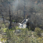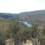 Continuamos por este nuevo camino que desciende entre campos de jaras y esta bien asentado. El camino ha cambiado de dirección y poco apoco vamos camino de las pozas. En algunos puntos del descenso vemos el pantano de El Vado.
