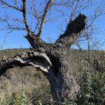 El sendero está bien marcado y pasamos junto a varios robles centenarios y con abundante jara. Conviene de vez en cuando hacer una parada para admirar el pueblo de Roblelacasa que le dejamos atrás.