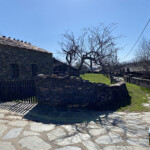 Entraremos en el pueblo por una puerta metálica que suele estar cerrada y que la dejaremos también cerrada para impedir que los animales entren en el pueblo. Pasamos junto al campo de bolos y el centro social y nos dirigimos al oeste.