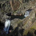 La senda termina en un camino ancho, de frente vemos el vado del arroyo del Soto que es el que forma las cascadas. Descendemos un poquito a la derecha, giramos a la izquierda y llegamos a un mirador para poder contemplar las cascadas, que en día de mucho aporte hídrico son espectaculares.