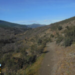 El camino llega a una campa y un poco más allá nos encontramos con una barrera que impide el paso a vehículos. Seguimos caminando y a menos de 100 metros nos sale una senda a la izquierda, esta indicada; vamos a seguir por ella. Poco a poco va perdiendo altura y a la derecha vemos el valle del rio Jarama.